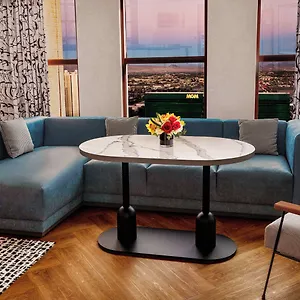 Offering a currency exchange and a cash machine, the comfortable New York New York Las Vegas is nestled 5 minutes' stroll from Park Theater and within 15 minutes' walk of The Strip. Set a minute's walk from the casino MGM Grand Resort in Las Vegas Strip with a complimentary glass of champagne, this 45-story eco-friendly resort features a seasonal outdoor swimming pool.
